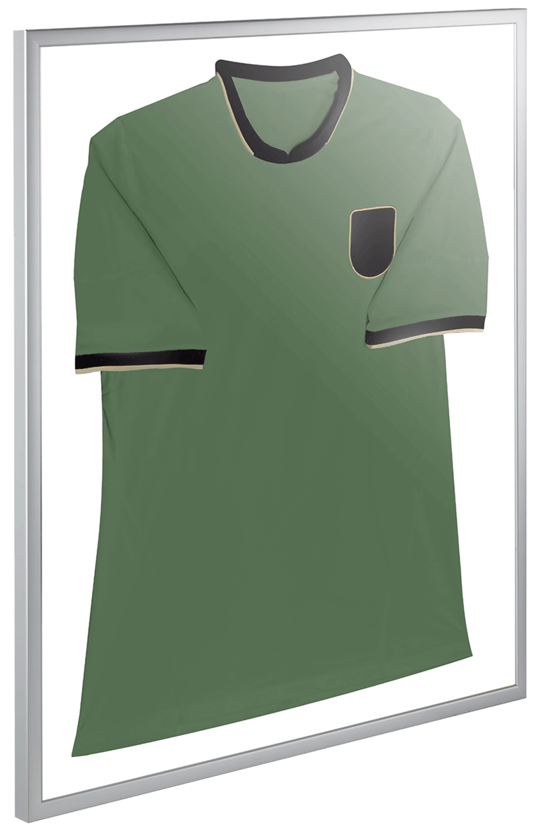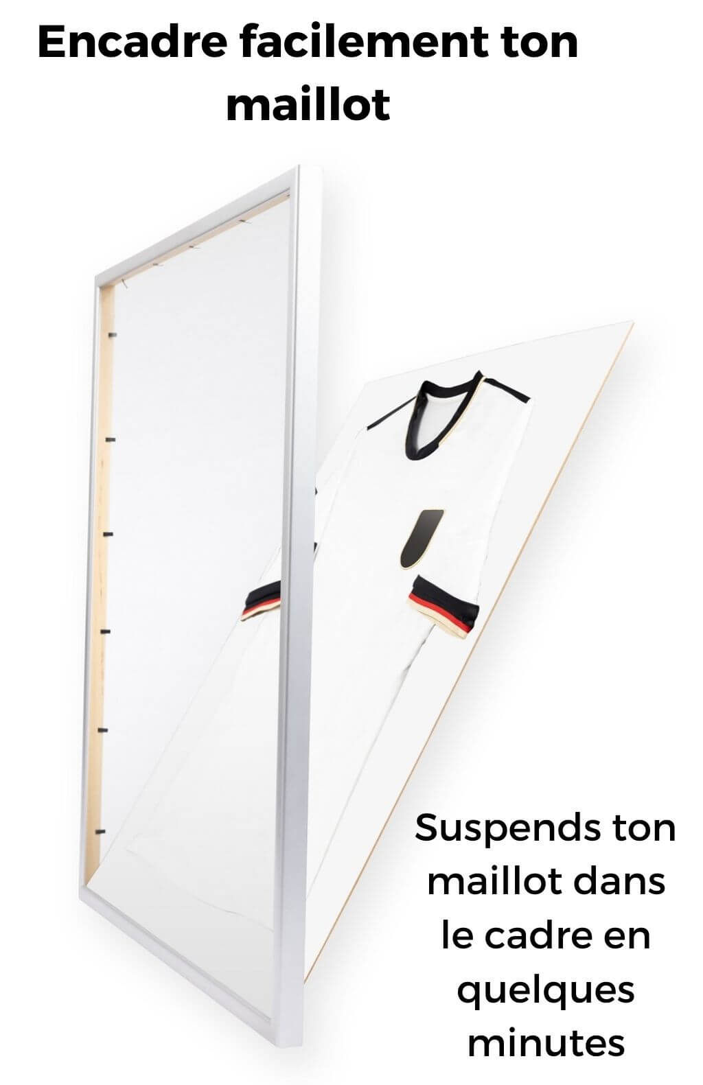 Cadre pour maillot "Classique" avec fixation par épingles : dimensions idéales 75 x 90 cm, profilé en bois noble (argent mat) - épingles, instructions de montage et vis & chevilles incluses. Et le meilleur : ton maillot est protégé des rayons UV nocifs !