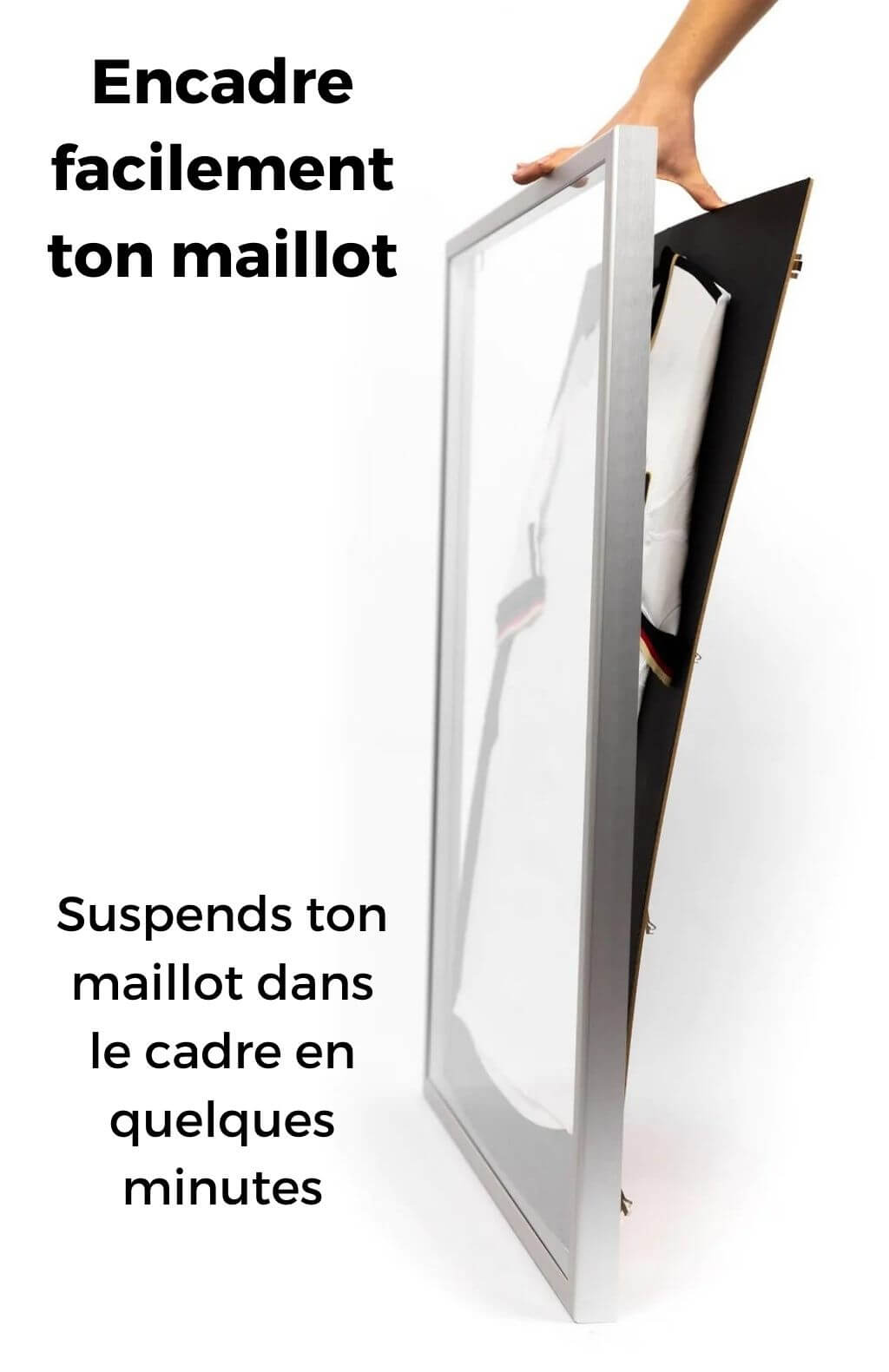 Le cadre idéal pour ton maillot : cadre pour maillot "Premium" (aluminium) avec fixation magnétique. Dimensions idéales 75 x 90 cm ou 100 × 100 cm, profilé en aluminium brossé mat élégant. Aimants, notice de montage, vis et chevilles inclus. Et le meilleur : ton maillot est protégé des rayons UV nocifs !